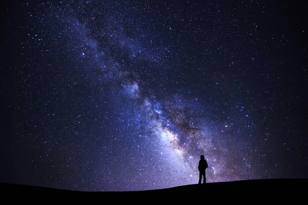 Photographie artistique prise lors d'un évènement de Peinture nébuleuse avec un Plaisancier en contre jour de la galaxie peinte en fond.
